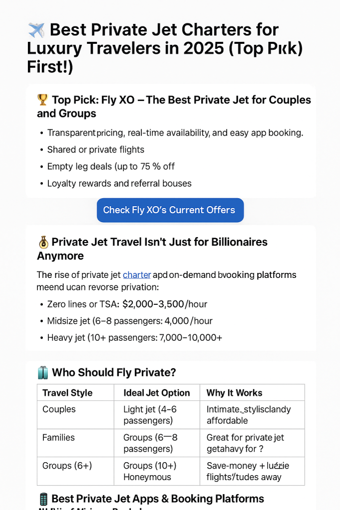 🥇 Top Pick: Fly XO – The Best Private Jet for Couples and Groups